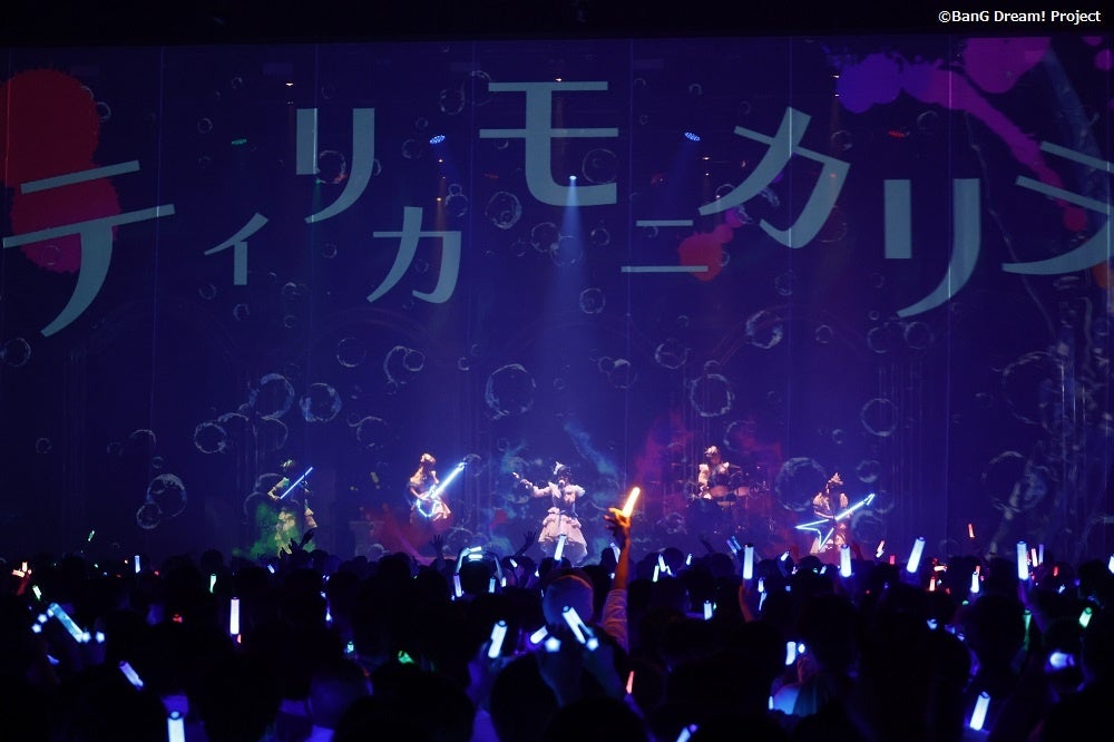 後半では、今年3月にリリースされたばかりの2nd Album「Polyphony」より、「ティリカモニカリラ」をライブ初披露。紗幕に映し出された魔法を表現した映像と相まって、モニカの世界観はさらなる深みへ。