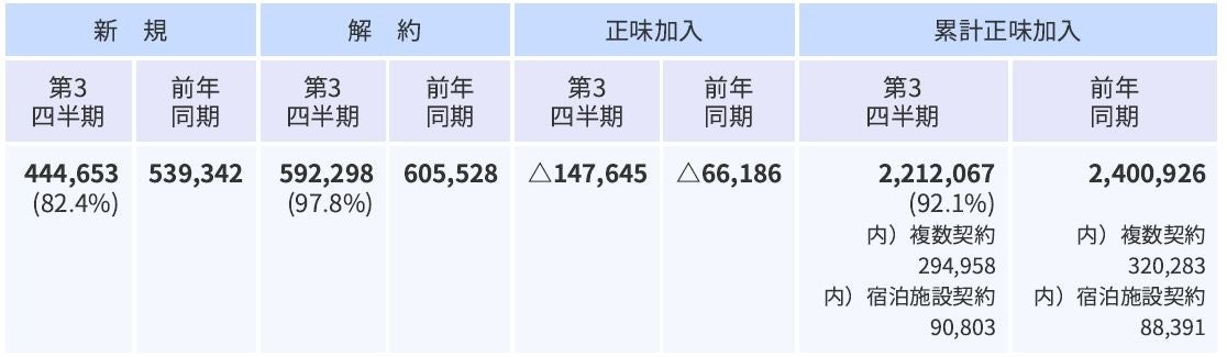2025年度第3四半期(4月~12月)の加入件数および前年同期との比較