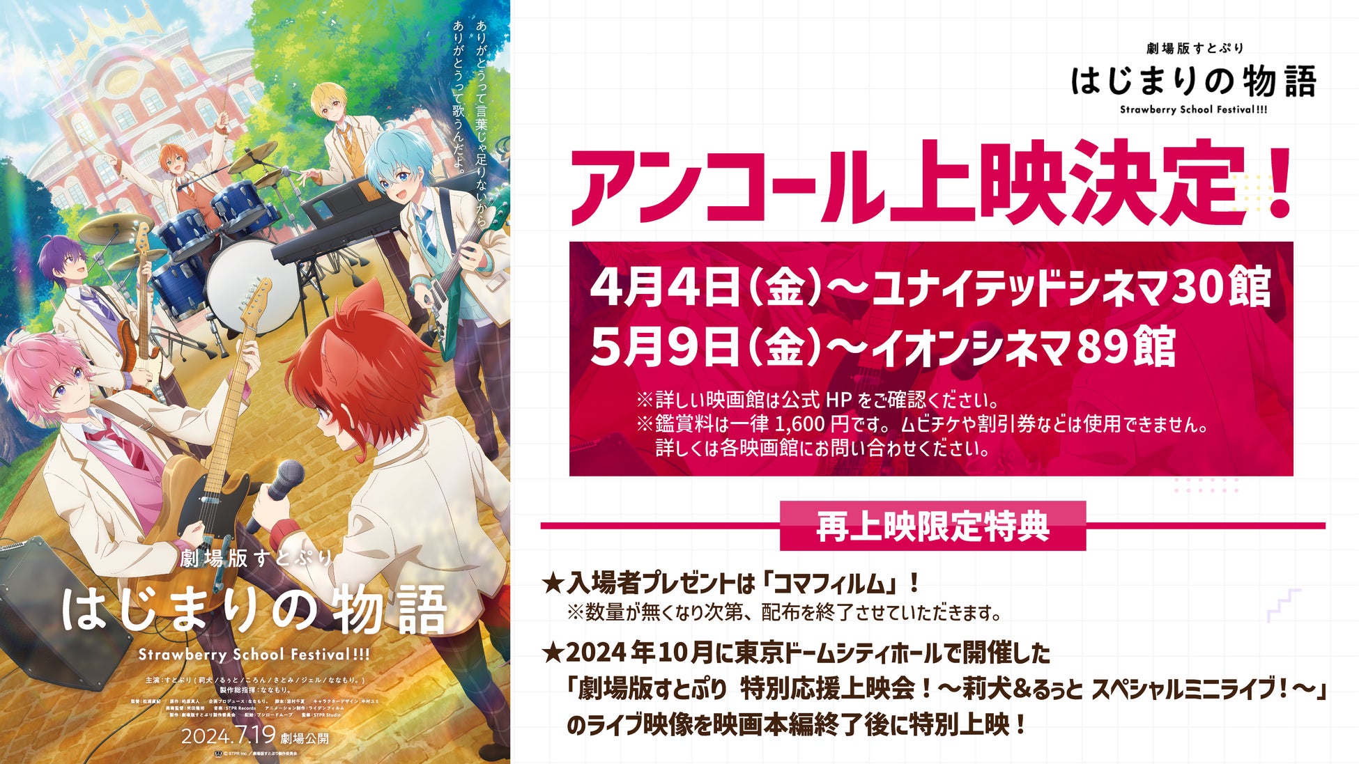 2024年7月19日(金)から全国公開してきた『劇場版すとぷり はじまりの物語~Strawberry School Festival!!!~』がファンのみなさまからの多くの希望の声を受けてアンコール上映が決定!