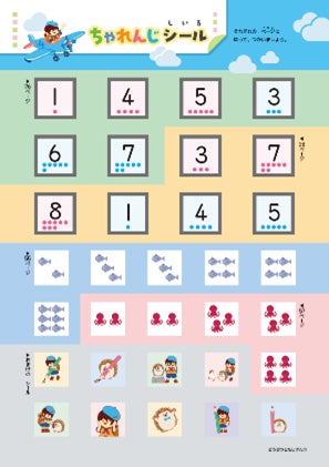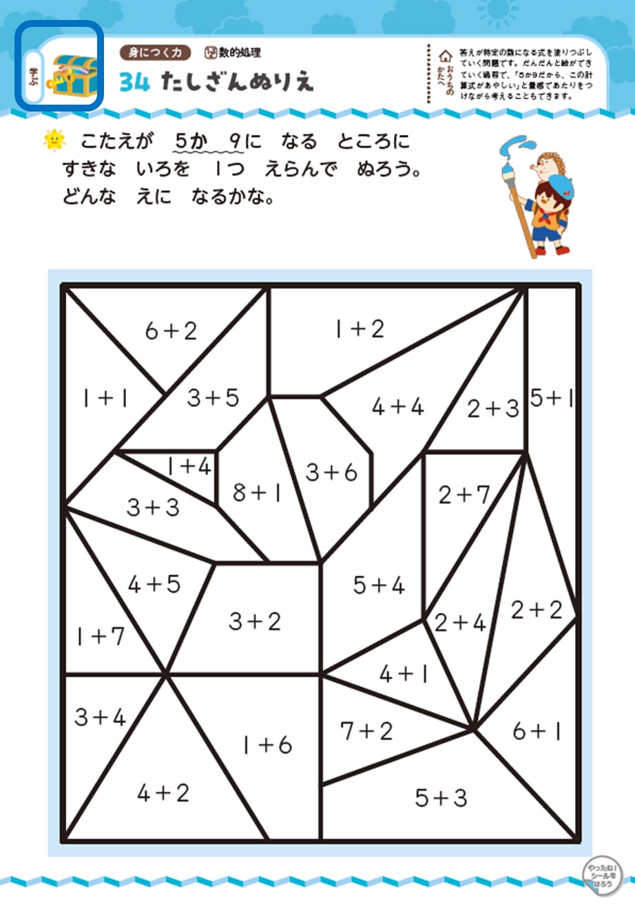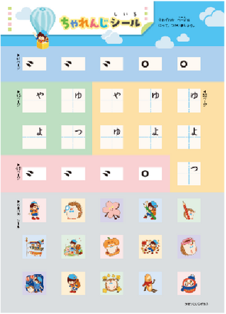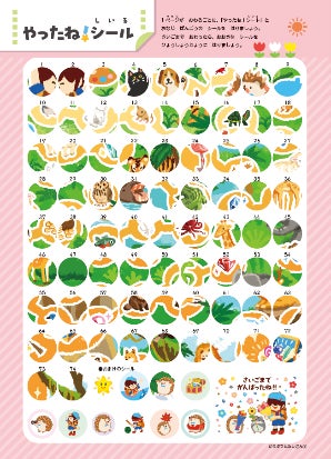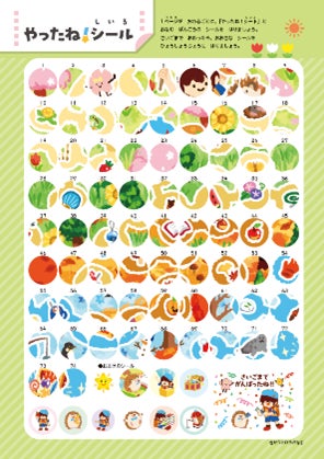 1ページ終わるごとに1枚ずつ、「やったね!シート」に貼っていくと、ひとつの楽しい絵が完成します。