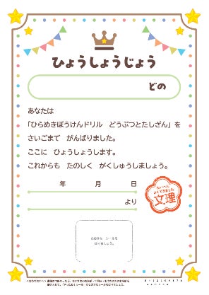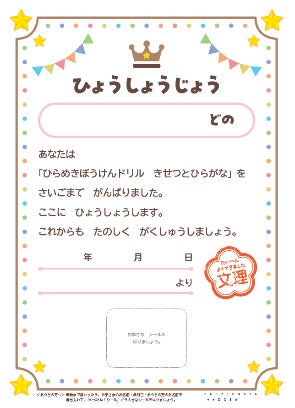 ★がんばった子どもたちへのごぼうびに(表彰状)