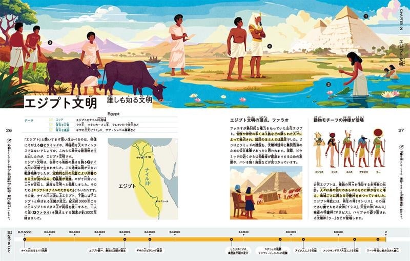 エジプト文明、メソアメリカ文明、縄文文化…世界のさまざまな古代文明が、この1冊で学べる! 小学生から大人まで一緒に楽しめる、古代文明の超入門書が誕生しました。