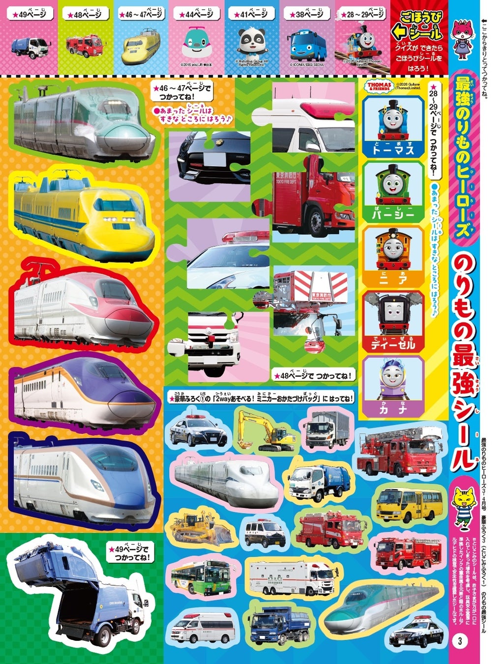 DVDでは、鉄道のまちのおまつりや、工事ののりものがいっぱいのイベントを大紹介。ほかにも、のりものシール、とれたんずわくわくぬりえ、しんかんせんカードなども付いていて、もりだくさんの1冊です。