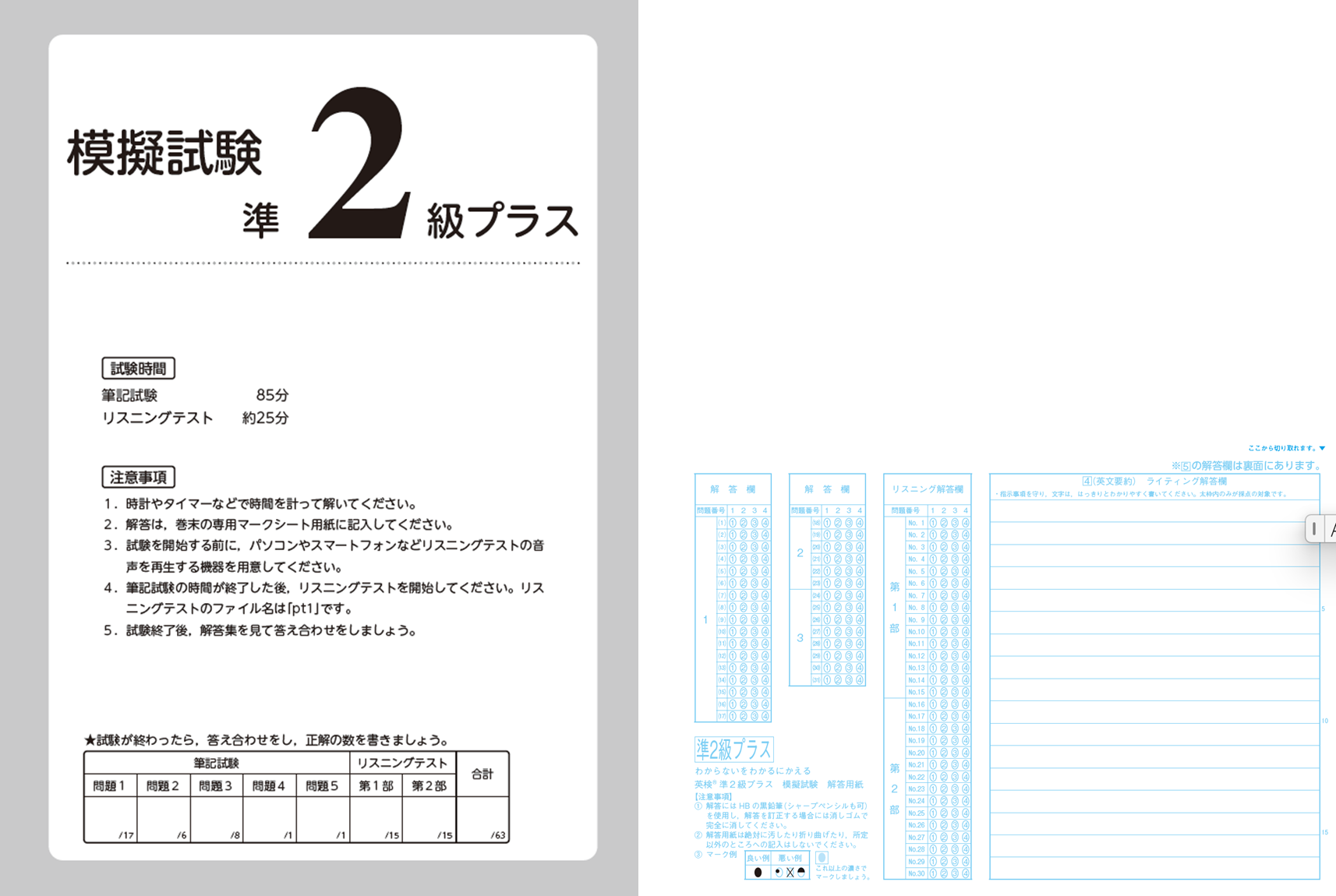 ・解答を記入する付属のマークシート付き、本番対策も万全