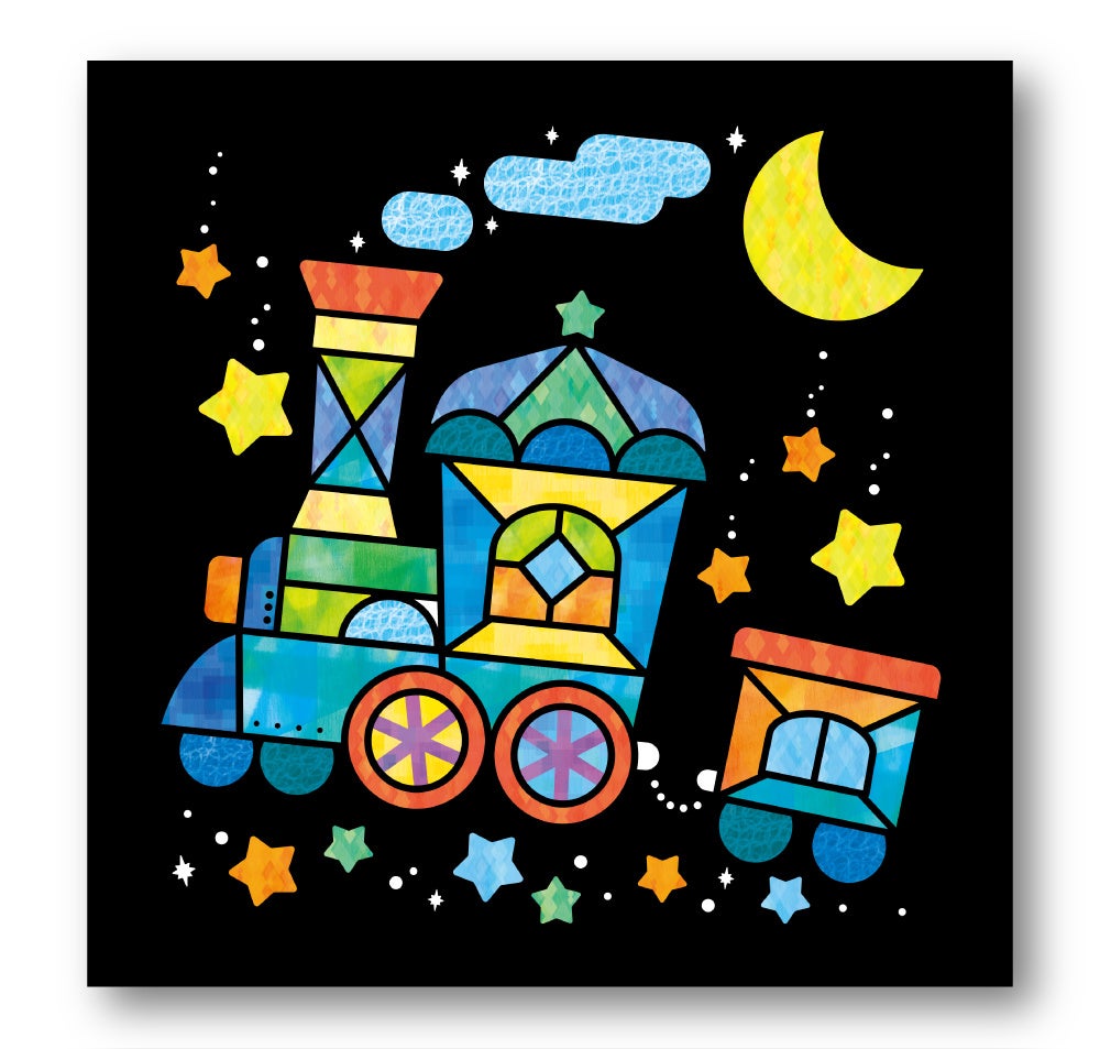 真っ黒な背景にシールを貼って、ステンドグラス風のイラストを完成させるパズルブック第3弾。「創造力」「集中力」「色彩感覚」「自己肯定感」など、将来につながる力を育みます。
