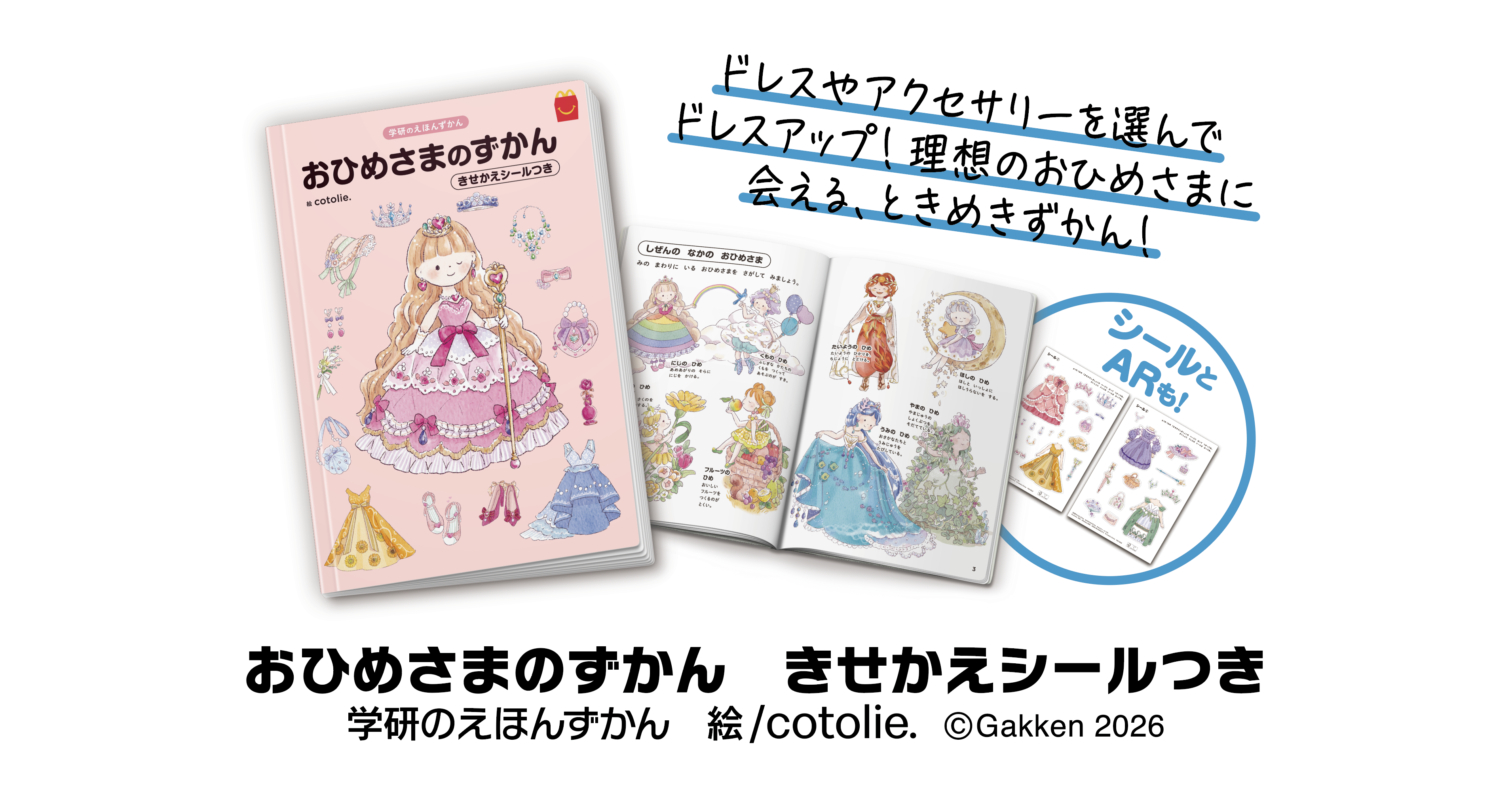 株式会社 学研ホールディングス(東京・品川/代表取締役社長:宮原博昭)のグループ会社、株式会社 Gakken(東京・品川/代表取締役社長:南條達也)発行の『学研のえほんずかん おひめさまのずかん』が、日本マクドナルド 株式会社(東京・新宿/代表取締役社長兼CEO:トーマス・コウ)が提供するハッピーセットとコラボレーションし、「ほんのハッピーセット」のミニ図鑑「学研のえほんずかん おひめさまのずかん きせかえシールつき」として、期間限定で登場いたします。2026年2月13日より、全国のマクドナルド(一部店舗を除く)にて販売が開始されます。