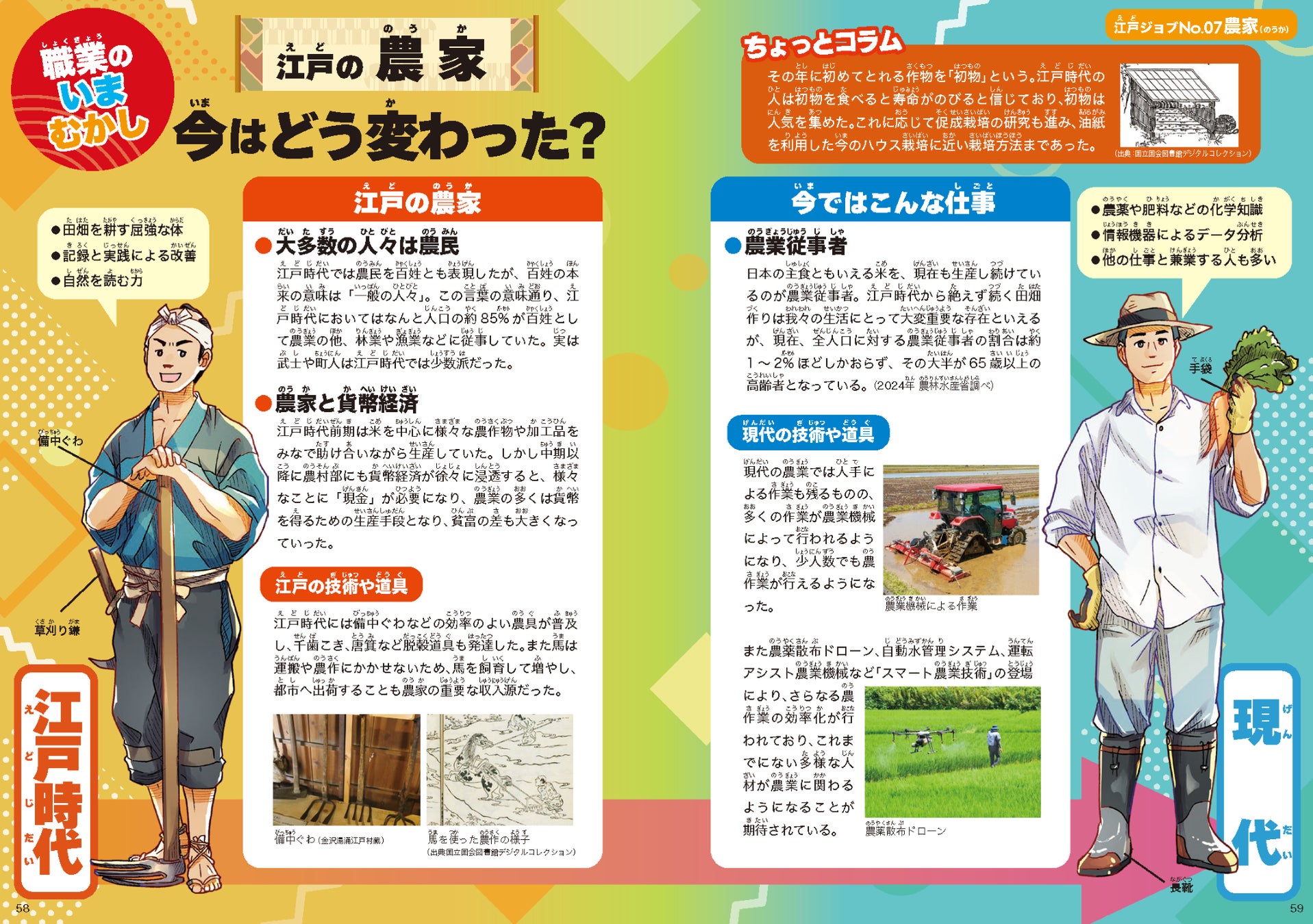 【マンガでのぞく江戸の人々の1日】リアルな江戸の「おしごと」を鮮やかに。現代と比較して歴史を楽しく学ぶ新感覚事典、『くらべる今と昔 江戸時代おしごと事典』発売。