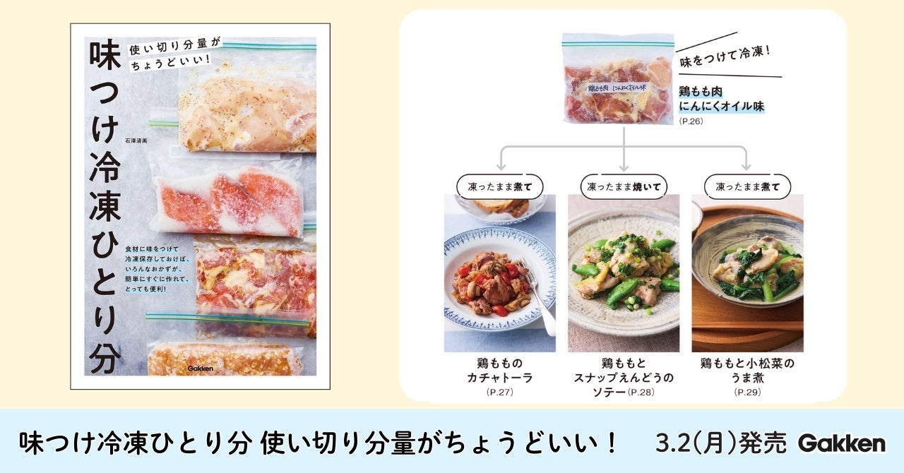 株式会社 学研ホールディングス(東京・品川/代表取締役社長:宮原博昭)のグループ会社、株式会社 Gakken(東京・品川/代表取締役社長:南條達也)は、2026年3月2日(月)に『味つけ冷凍ひとり分 使い切り分量がちょうどいい!』(著:石澤清美)を発売いたしました。