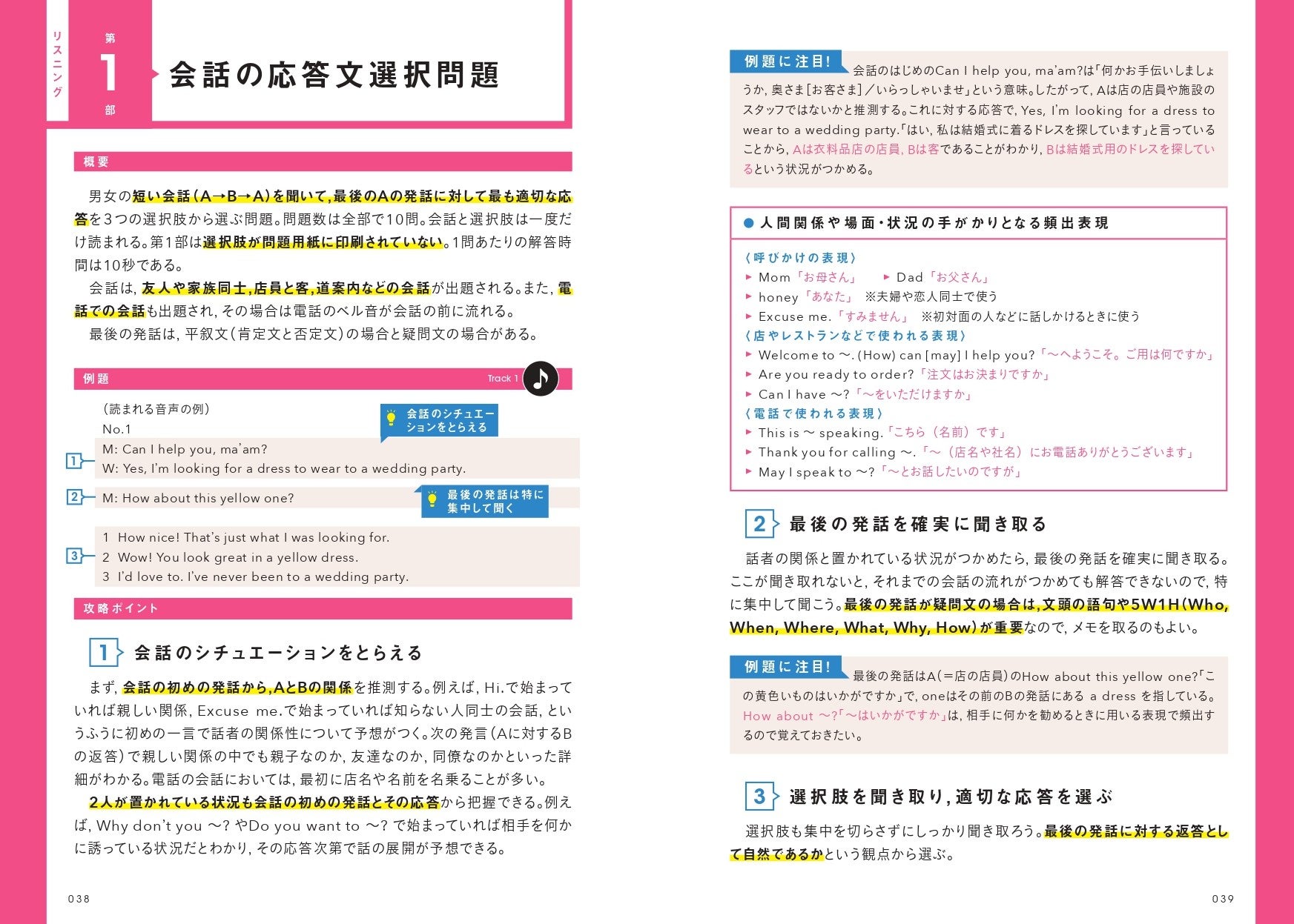 各級巻頭には、二次試験も含めて、大問ごとに解き方とポイントを解説した「英検攻略ガイド」を収録しています。例題とともに解説されているので、さまざまな場面で活用することができます。さらに今年度から、リスニングの攻略ガイドに音声が付き、ポイントがよりわかりやすくなっています。