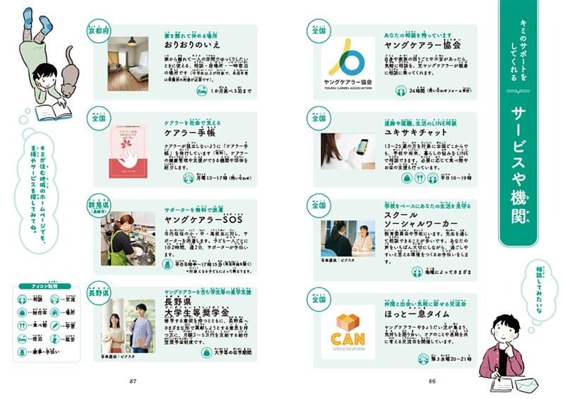 全国どこからでも利用できる相談窓口や、各自治体のヤングケアラー支援窓口を掲載しています。「自分の住んでいる地域には、どんな支援があるのか」を調べるきっかけになるよう、支援につながる入り口を用意しました。
