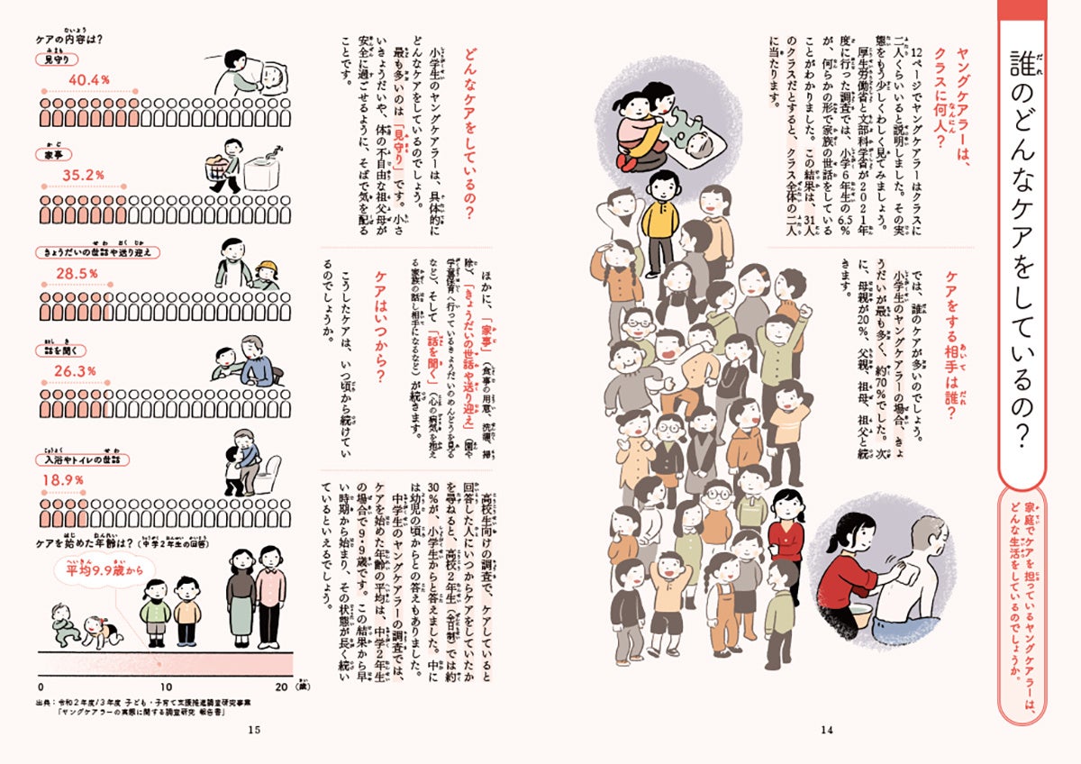 本書は、ヤングケアラー本人が読んでも、ヤングケアラーの周りにいる子どもたちや大人が読んでも、意味のある一冊です。家族を支えることはとても尊いことですが、支える人にも支えは必要です。本書は、ヤングケアラー本人や、その周辺の人がそれぞれの気持ちに気づいて行動するきっかけとなり、誰かが一人で抱え込まなくてすむ、そんなやさしい社会につながっていくことを目指しています。