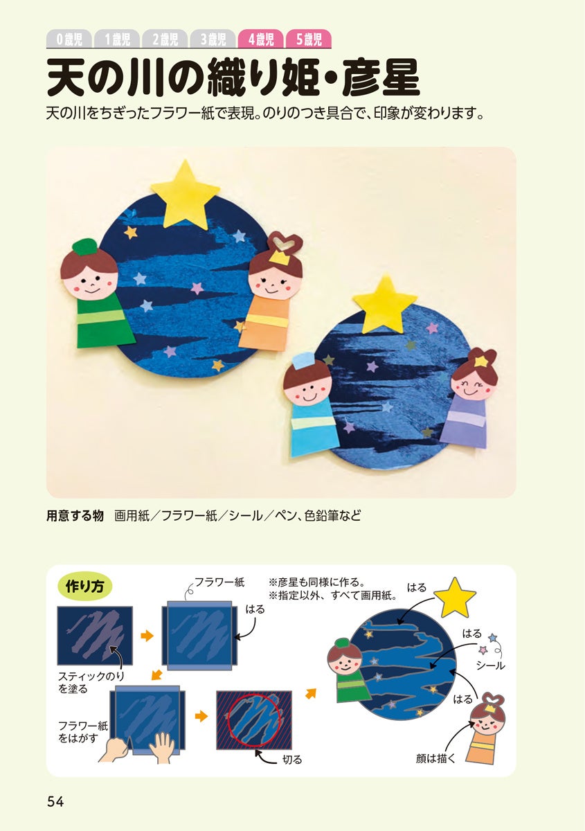 【七夕】天の川の織り姫・彦星、手形ロケット&足形流れ星、にじみ絵の短冊 など