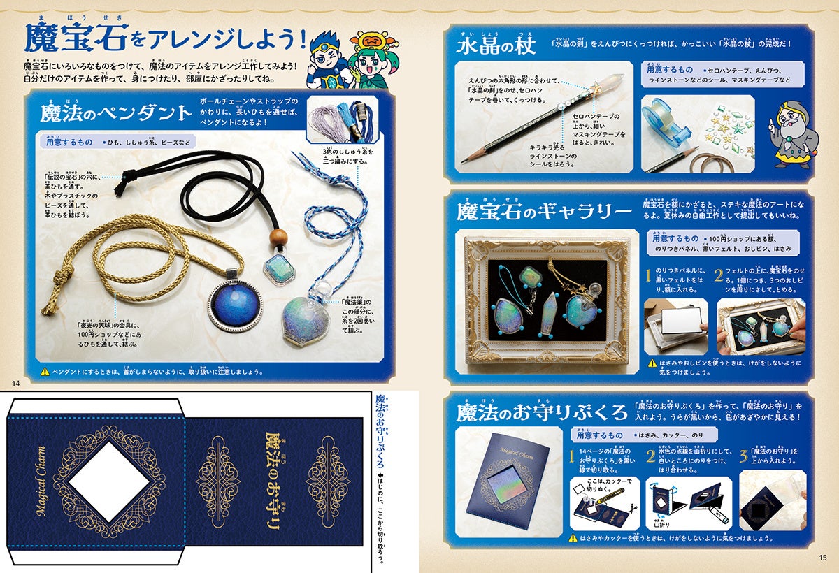 ガイドブックでは、6種類の「魔宝石」を使った、いろいろなアレンジ工作を紹介しています。「魔宝石」は、夏の自由研究や自由工作にもピッタリ!