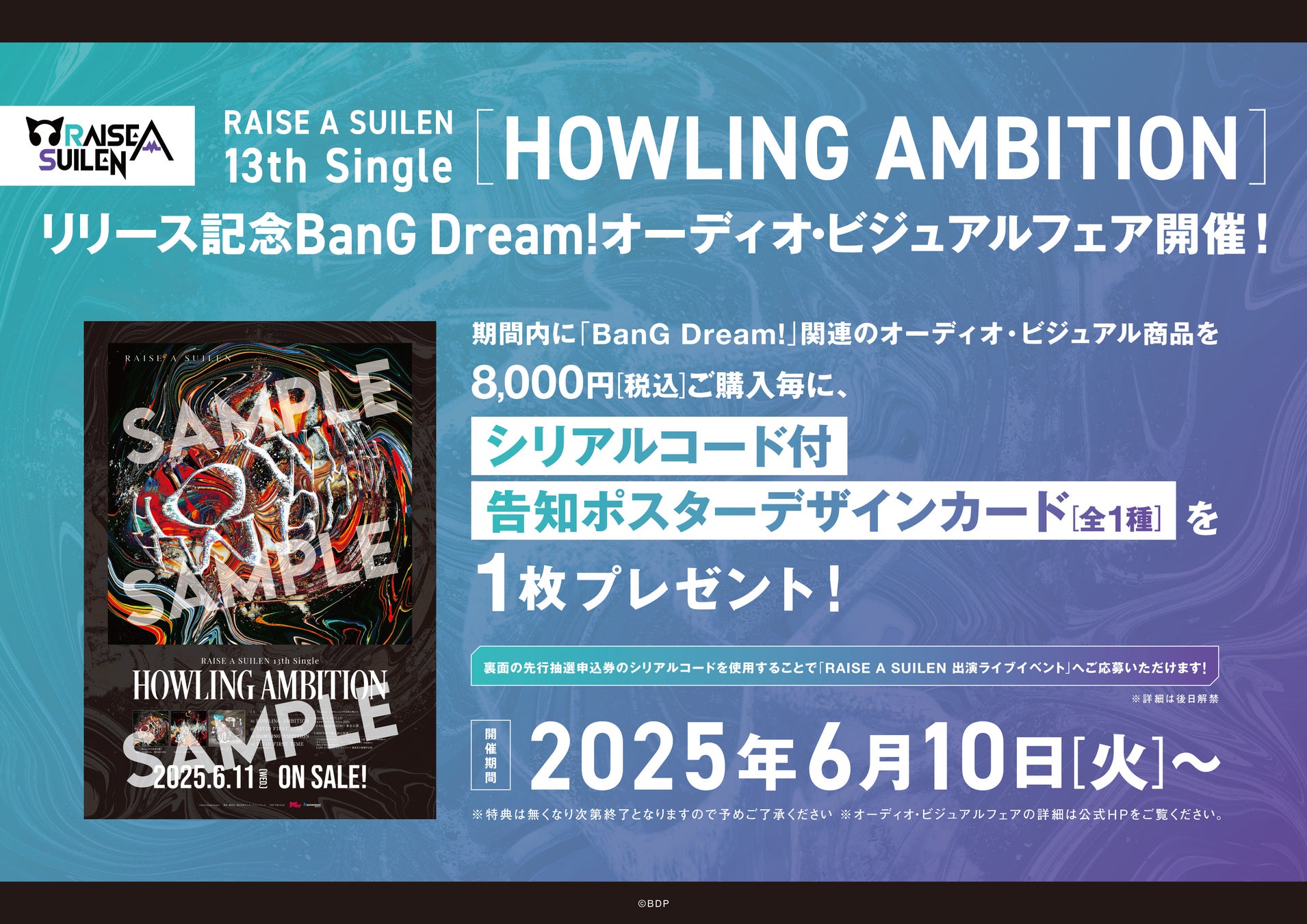 RAISE A SUILEN 13th Single「HOWLING AMBITION」についてお知らせいたします。
