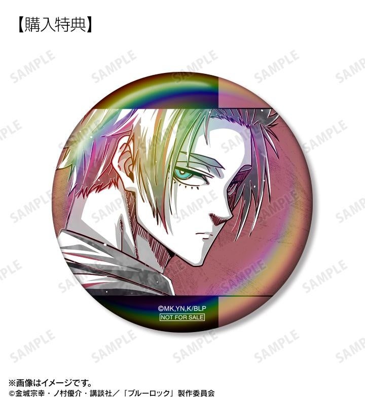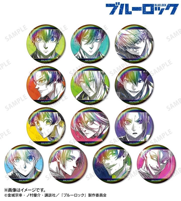 潔 世一、糸師 凛、凪 誠士郎、雪宮 剣優、乙夜 影汰、烏 旅人、蜂楽 廻、千切 豹馬、御影 玲王、氷織 羊、糸師 冴、オリヴァ・愛空、士道 龍聖のイラストを新たなタッチで魅力的に表現し、オーロラ加工を施した缶バッジに仕上げました。