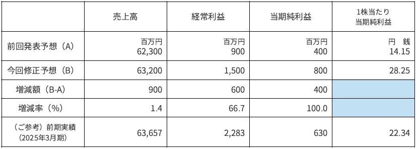 当社は、2026年3月期において、最近の業績動向等を踏まえ、2025年5月15日に公表しました通期業績予想(連結・個別)を下記のとおり修正いたします。
