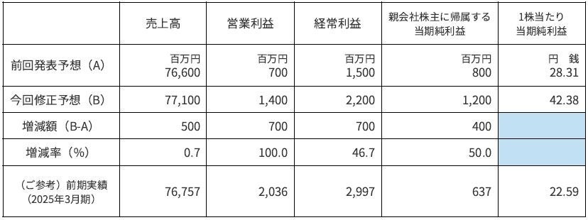1. 2026年3月期 通期連結業績予想数値の修正(2025年4月1日~2026年3月31日)