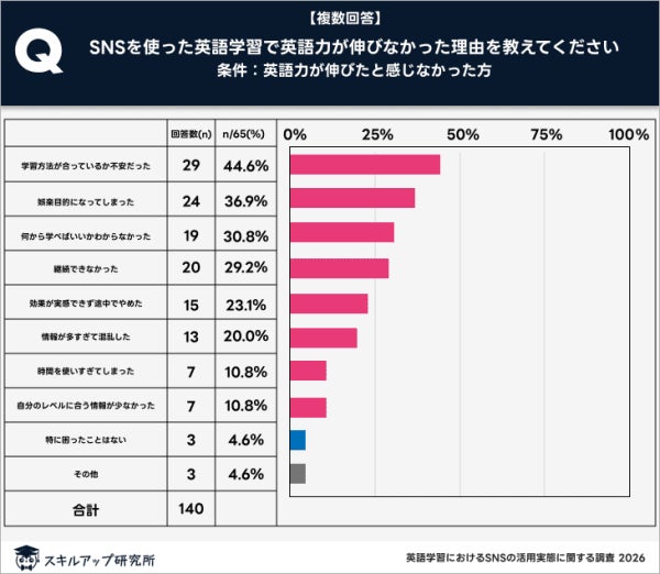 SNSでの英語学習で効果を感じにくい一番の理由は「学習方法への不安」|スキルアップ研究所調査結果