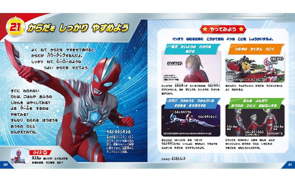 ウルトラマンたちの教えは全部で22編。「あいさつはまほうのことば」「しっぱいはせいこうのさいしょのいっぽ」など、お子さんが新生活を始める前に教えてあげたいメッセージばかり。