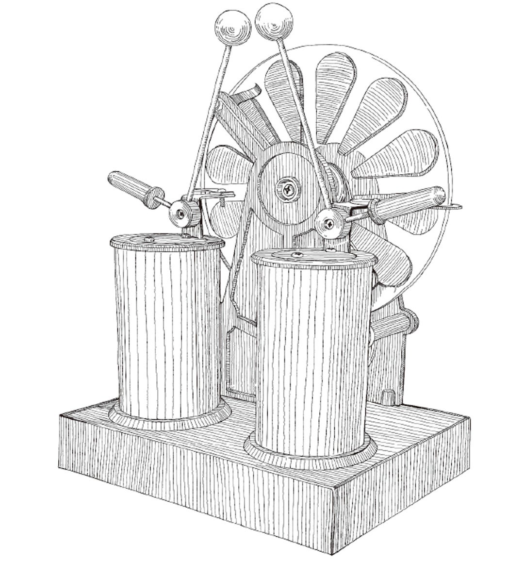 今回、大人の科学マガジン編集部がモデルにしたのは、当時島津製作所で製作されていたウイムズハースト式感応起電機です。