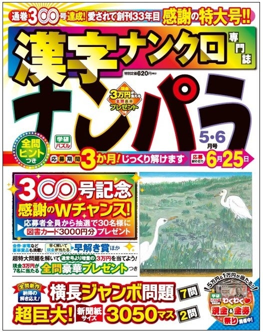 5・6月号は「300号記念特大号」と銘打ち、特別付録「超巨大!新聞紙サイズ3050マス問題」や各種豪華懸賞など、皆様への感謝をこめた充実の内容です。