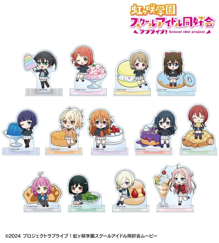 高咲 侑、上原歩夢、中須かすみ、桜坂しずく、朝香果林、宮下 愛、近江彼方、優木せつ菜、エマ・ヴェルデ、天王寺璃奈、三船栞子、ミア・テイラー、鐘 嵐珠のちびキャライラストをメインにデザインし、アクリルスタンドに仕上げました。