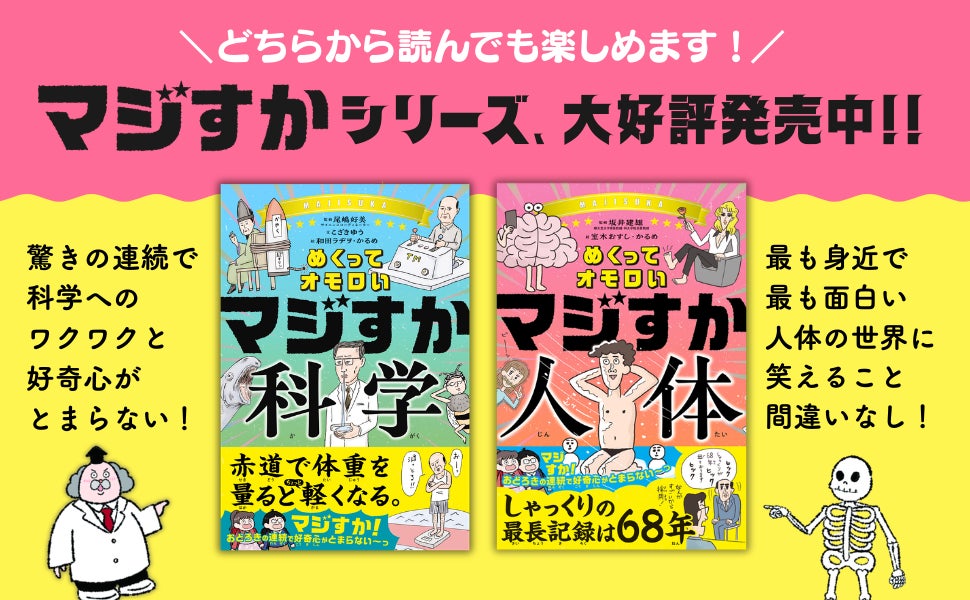 『マジすか科学』『マジすか人体』どちらから読んでも楽しめますので、ぜひこのシリーズで、親子いっしょに「好奇心のトビラ」を開きましょう!