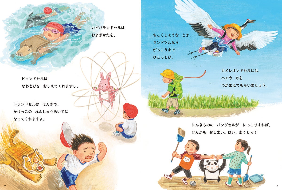 ダジャレ炸裂のランドセル名は、読んでいるだけで笑いが巻き起こりそう。まさに説明不要の面白さです。また、ランドセルたちの機能は、親なら誰もが「そうそう、それ、あるある!」と言いたくなるような問題を解決してくれるもの。大人も楽しめるポイントがいっぱいです。
