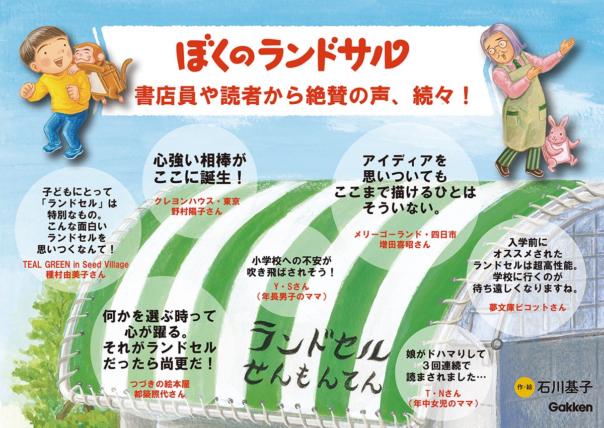 ◉子どもにとって「ランドセル」は特別なもの。こんな面白いランドセルを思いつくなんて! 発想の豊かさに驚くとともに、読んでいくうちに「私もこんなランド〇〇がほしい!」って思いました。小学校へ行くのが楽しみになりますね。(TEAL GREEN in Seed Village 種村由美子さん)