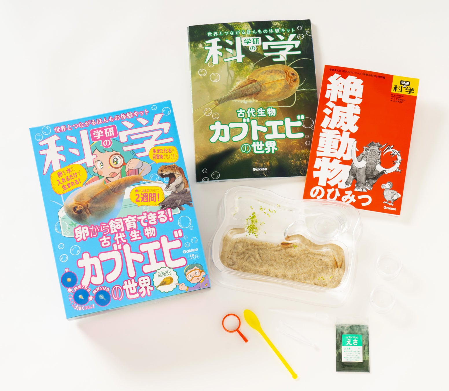 『学研の科学』で初めての生物キットです。卵を水に入れて1~3日で、「生きた化石」といわれるカブトエビが生まれます。40個以上の乾燥卵、研究水そう、砂、えさ、クレソンの種、ルーペ、スポイト、ピンセット、さじなどがついている大満足の飼育セット。古代生物を自分で目覚めさせて、かっこいい研究水そうで飼育・観察しましょう!