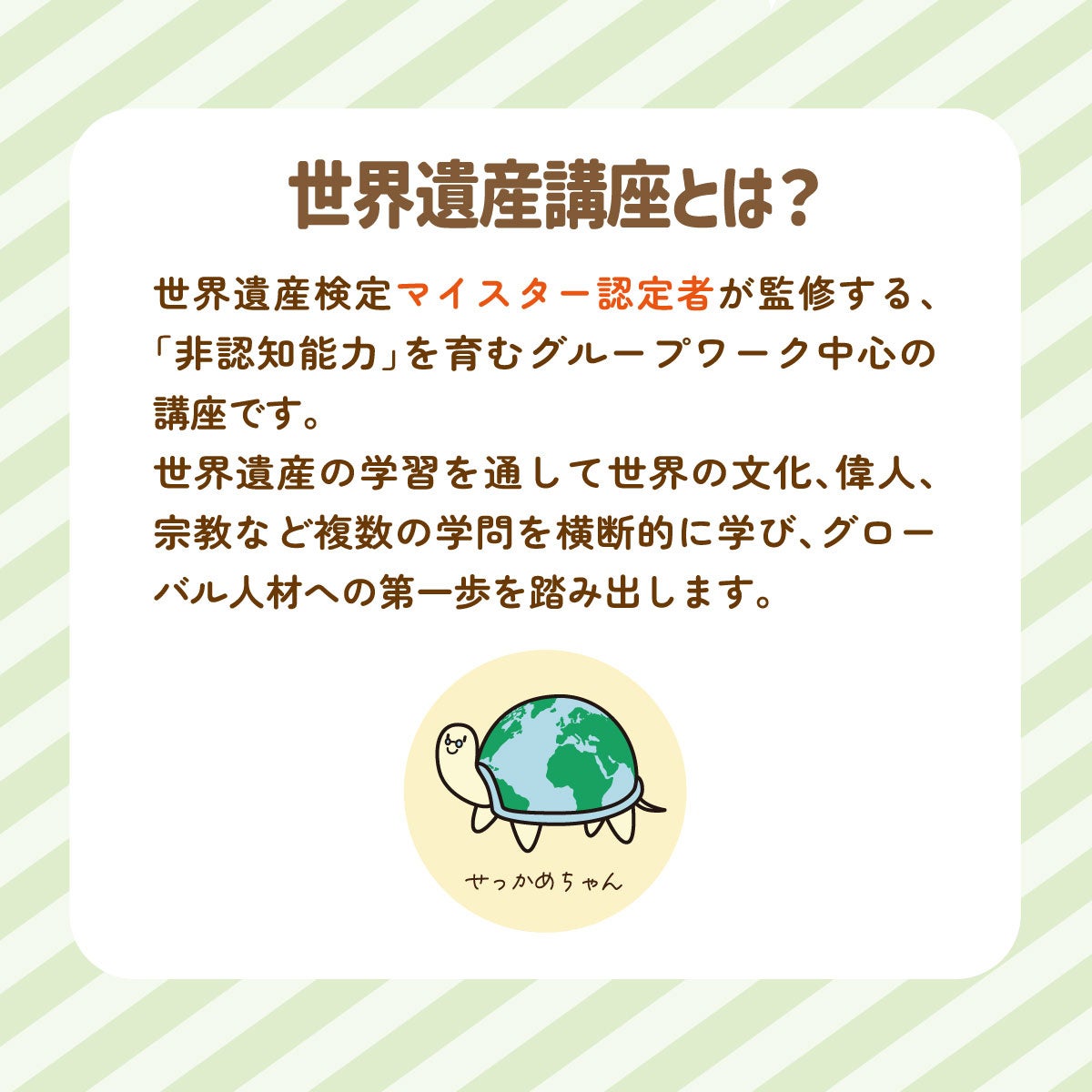 世界遺産検定マイスター認定者の監修のもとに、ますますパワーアップした本講座をぜひともご体験ください。