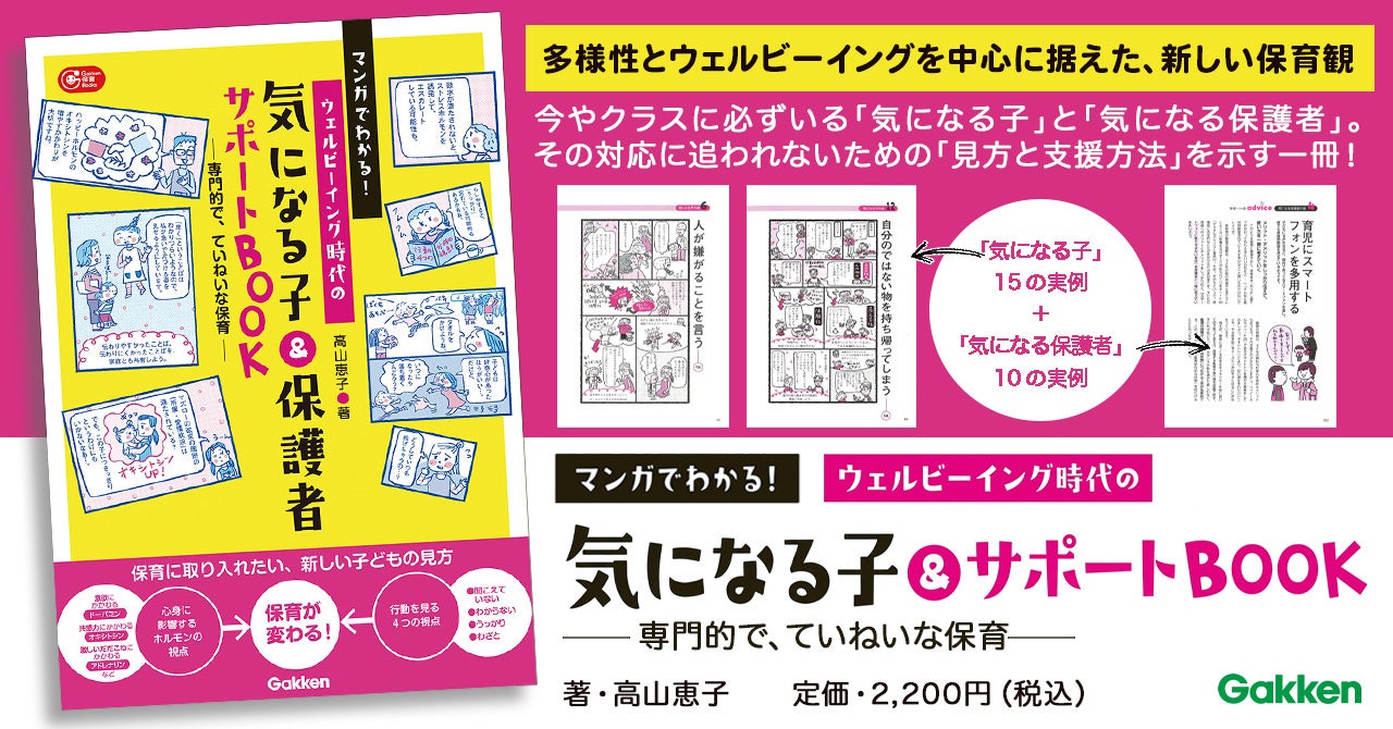 著者の高山恵子氏は、2007年に『育てにくい子に悩む保護者サポートブック』(Gakken)を出版しました。その後、社会情勢や家庭環境、保育の環境は大きく変化。SNSの普及などにより、保護者が多様な専門知識を持って保育者に相談する場面も増加し、保育者自身がつねに学び、知識をアップデートすることがますます重要になっています。そうした変化に応じるため、テーマを広げ、新しい視点を取り入れた本書が誕生しました。