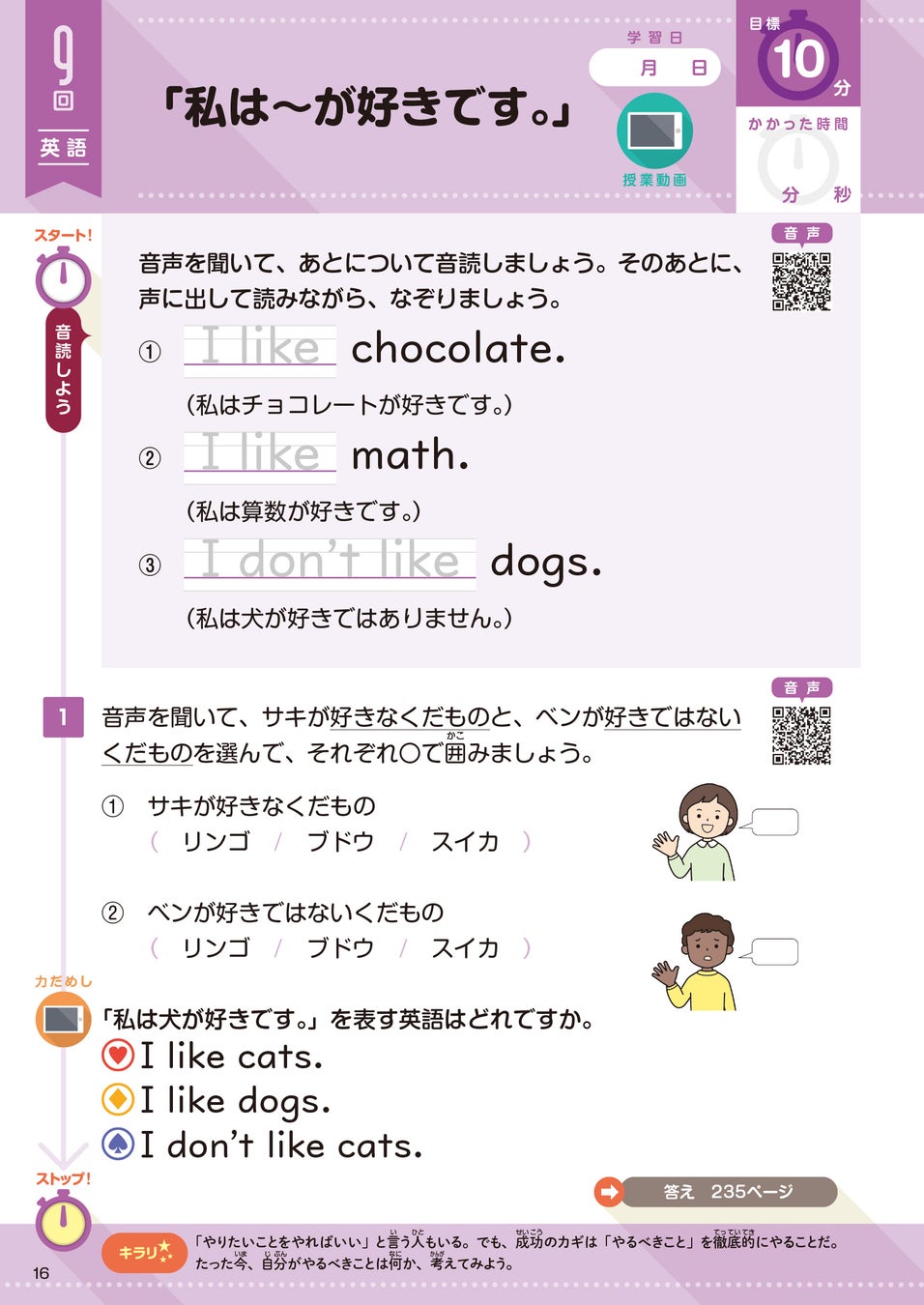 「動画」で英文を使うシチュエーションの理解が深まり、「音声」で発音練習ができるので、学校の授業を自信をもって受けられるようになります。
