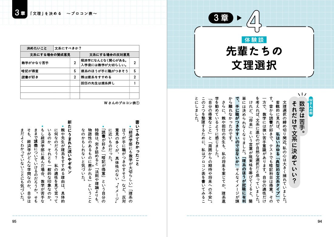 本書では、文理選択から大学選びまで、先輩たちが何を悩み、どう決断したのか。きれい事ではない「リアルな葛藤とエピソード」を多数収録しています。