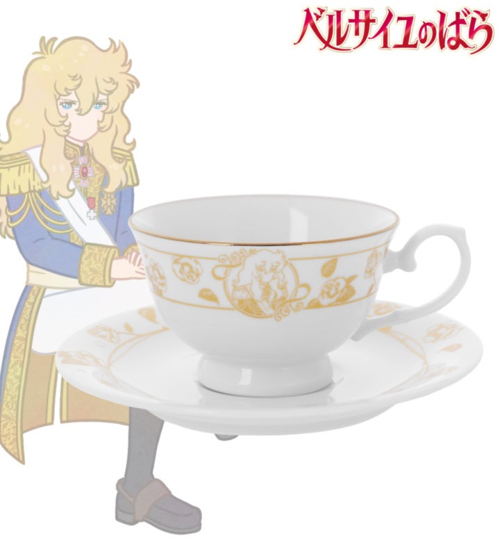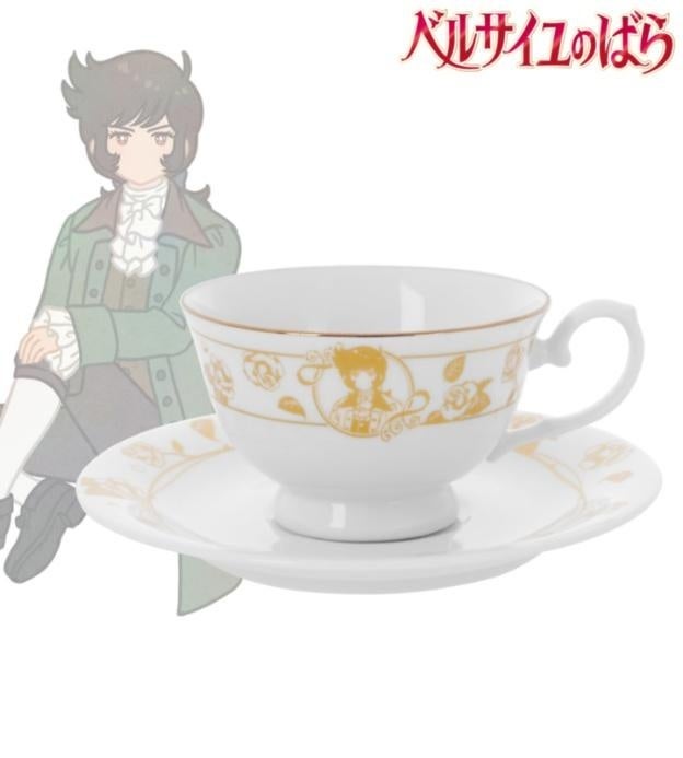 オスカル、アンドレのイラストをボタニカルデザインに落とし込んで繊細なタッチで新たに描き起こし、カップ&ソーサーに仕上げました。
