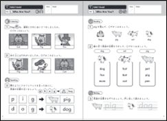 さまざまなキャラクターと一緒に楽しく学べる7つの「お話」。英語のレベルは7段階、小学校低学年から中学校入門期に対応。まずは英語音声をたっぷり聞き、「お話」に出てくる英単語の意味を類推したり、繰り返される単語を読んだりする中で、音と文字の関係性(ルール)に自然と気づき、「読む」「書く」活動につなげることが可能です。