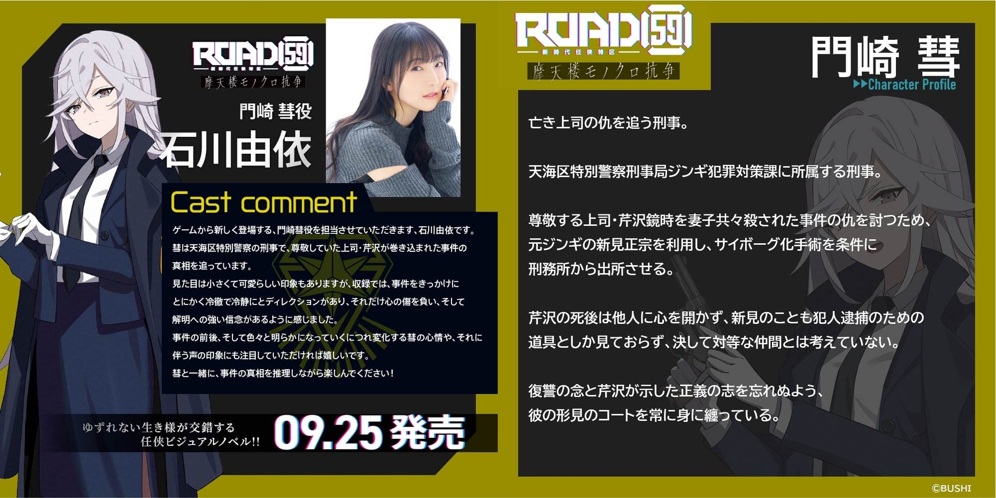 ビジュアルノベルゲーム「ROAD59 -新時代任侠特区- 摩天楼モノクロ抗争」発売記念!石川由依、津田健次郎、佐々木李子、谷江玲音、小林親弘のサインが当たるリリース記念キャンペーンを開催!