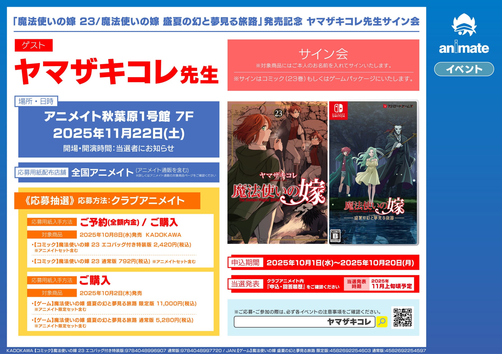 発売を記念して、ヤマザキコレ先生によるサイン会の開催も決定しました!全国のアニメイト(アニメイト通販)で対象商品を購入することで抽選に参加できますので、この機会にご応募ください。