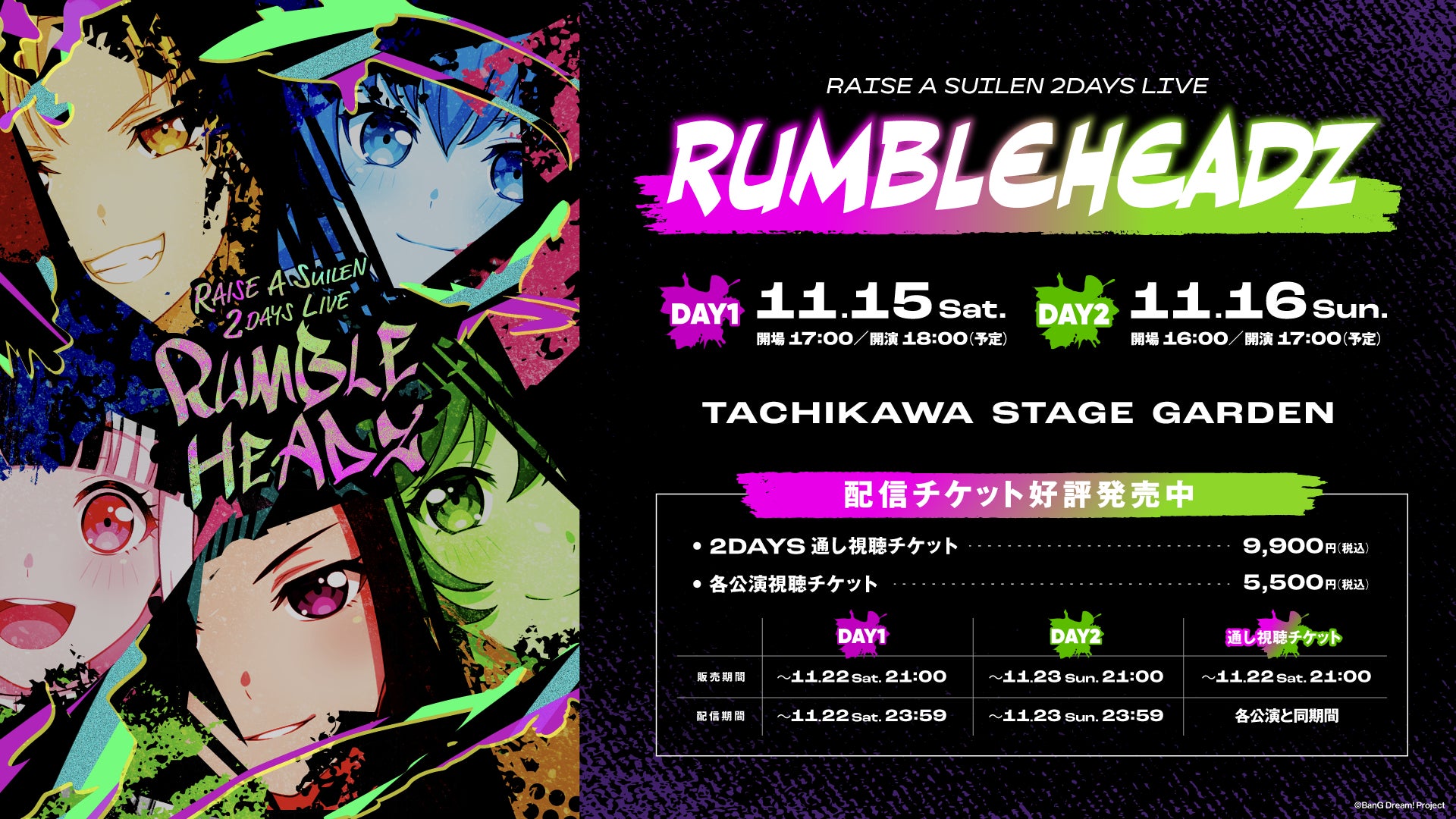 11月15日(土)・16日(日)にTACHIKAWA STAGE GARDENにて開催いたしました、RAISE A SUILEN 2DAYS LIVE「RUMBLEHEADZ」についてご報告いたします。