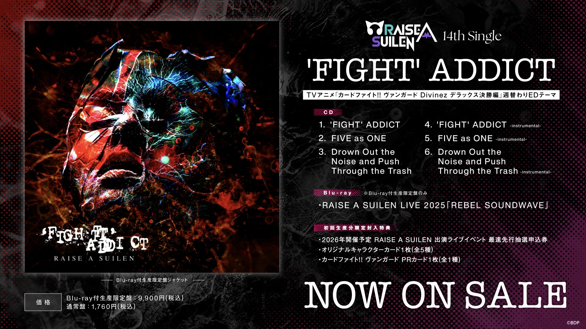 RAISE A SUILEN 14枚目のSingle「‘FIGHT’ ADDICT」が好評発売中です。