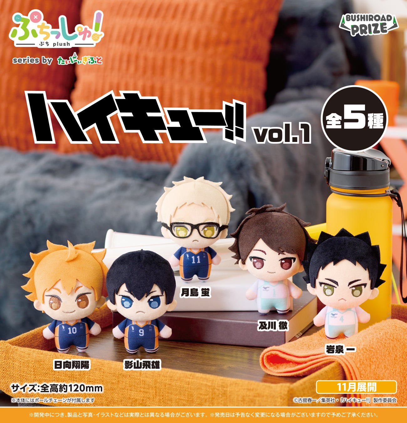 おめめぱっちりの”ぷち”サイズのぬいぐるみシリーズ「ぷちっしゅ!」とぬいぐるみバッジシリーズ「ぴんぐるみ」にアニメ『ハイキュー!!』が登場!手に収まるサイズ感のぬいぐるみで、カバンやポーチにも付けやすい!