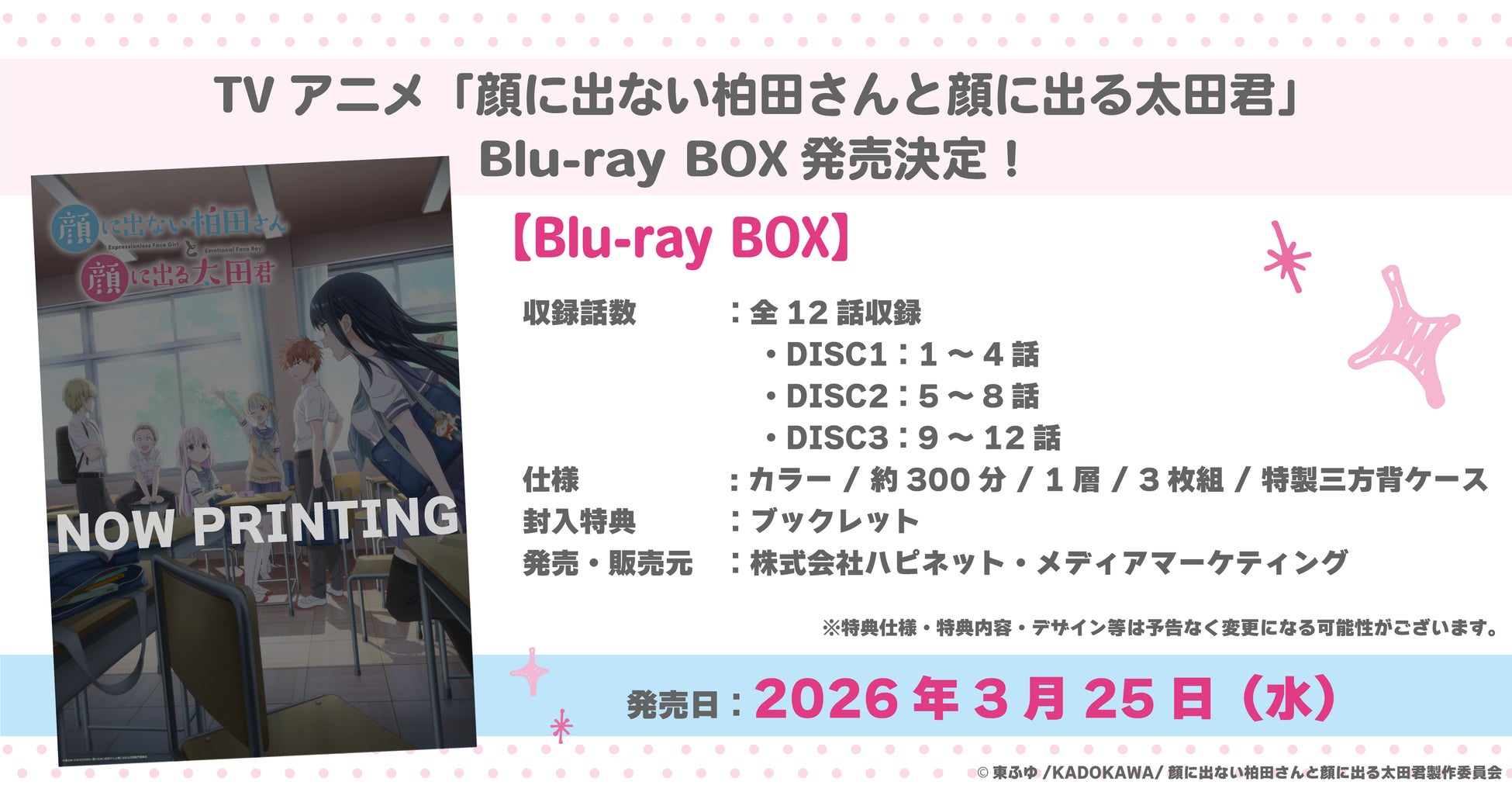 TVアニメ『顔に出ない柏田さんと顔に出る太田君』ノンクレジット版のオープニング・テーマ、エンディング・テーマを公開!Blu-ray BOXの発売決定!