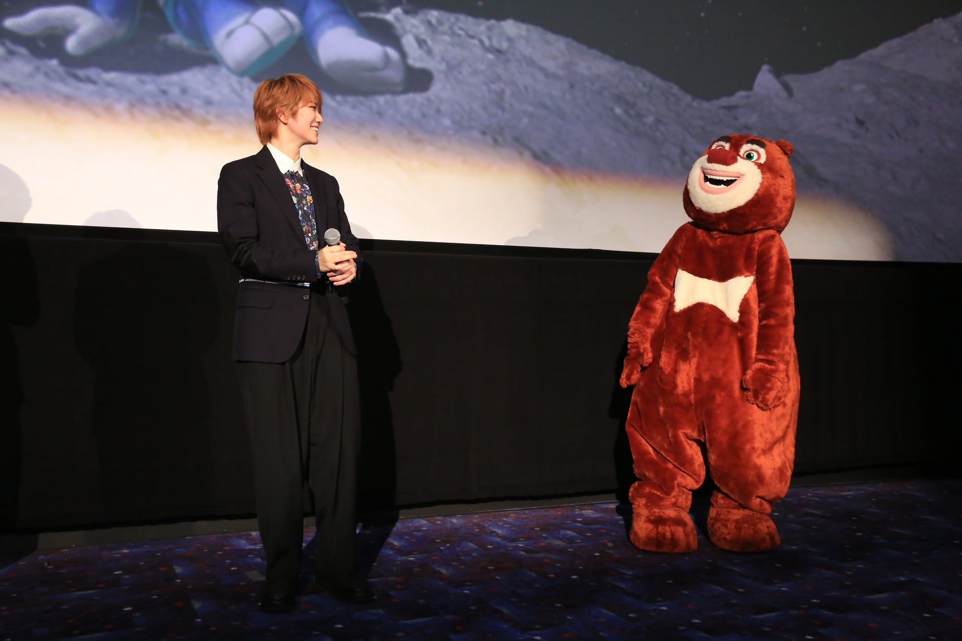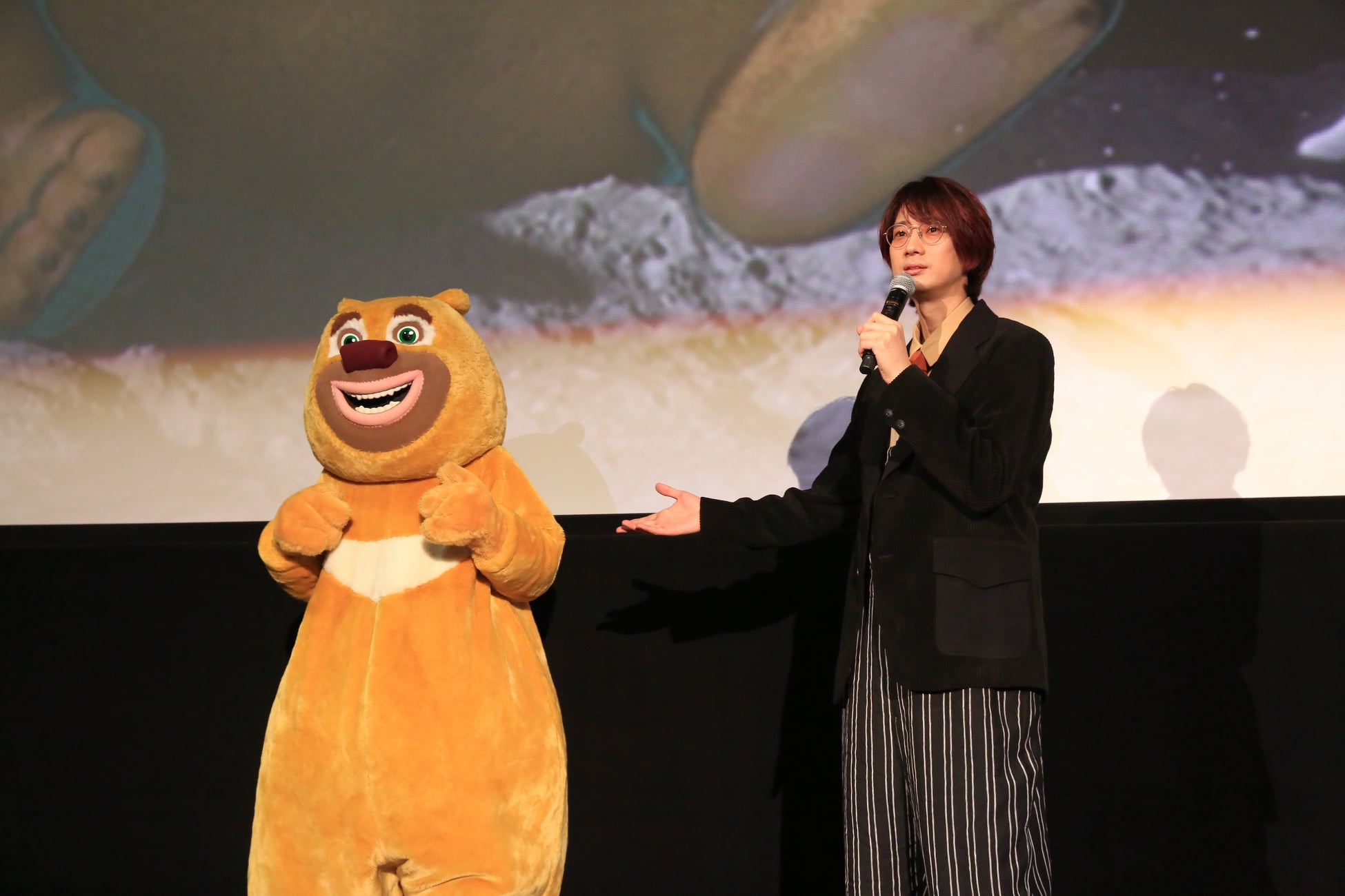 上映後には、江口拓也(くまじろう役)、七海ひろき(アブ役)、さらにくまじろうとくまたろうが登壇。MCからの質問に応じて、映画の見どころやアフレコ時のエピソードが披露され、会場は笑顔あふれる賑やかで楽しい雰囲気に包まれました。