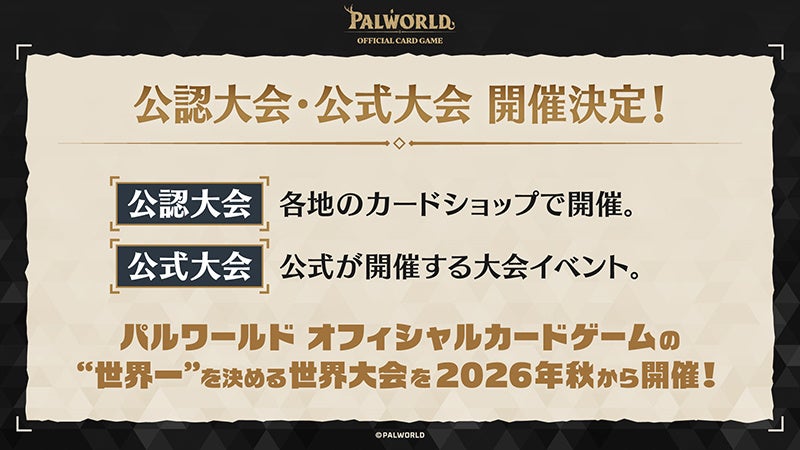 2026年秋からは「パルワールド オフィシャルカードゲーム」の“世界一”を決める世界大会を開催予定!