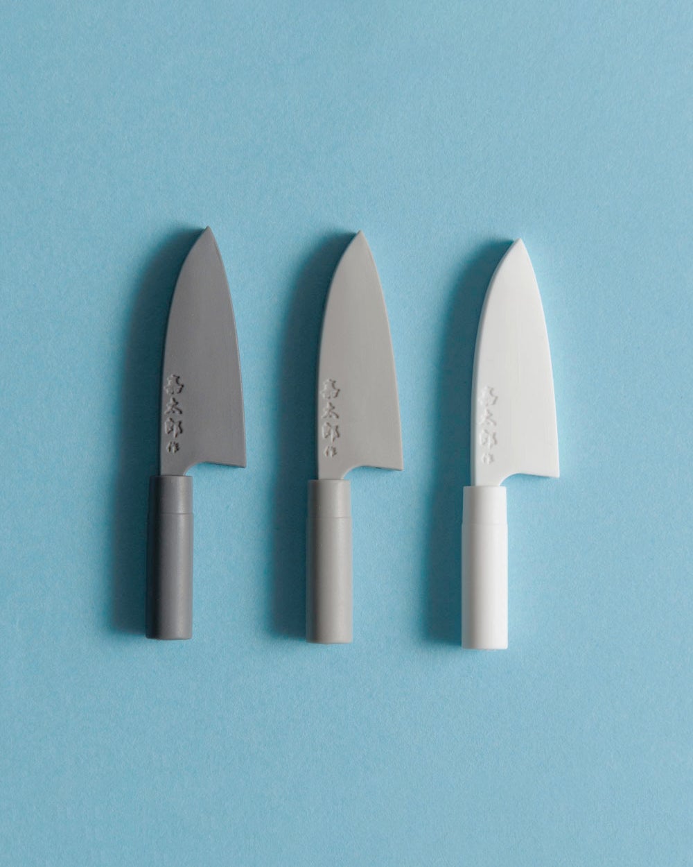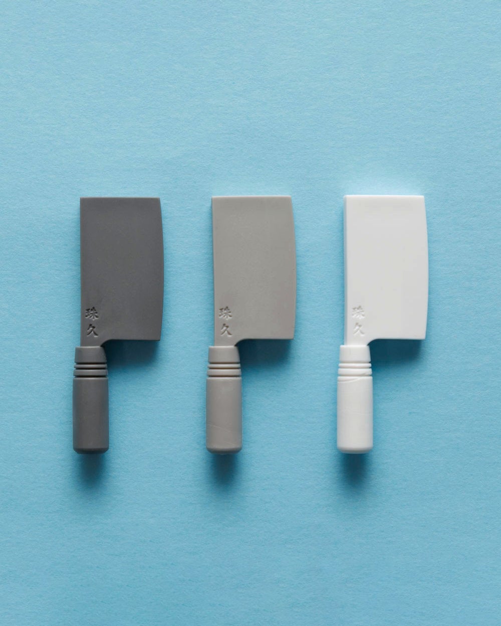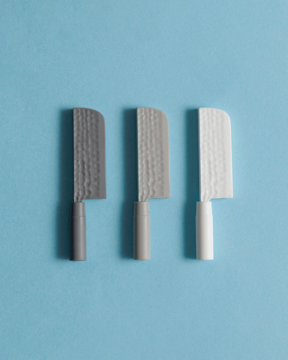 第1弾は「研ぐ」。消しゴム素材でできた包丁で、紙の上で“研ぐ”ように使っていくと、消しゴムの刃部分がどんどんピンピンに!?