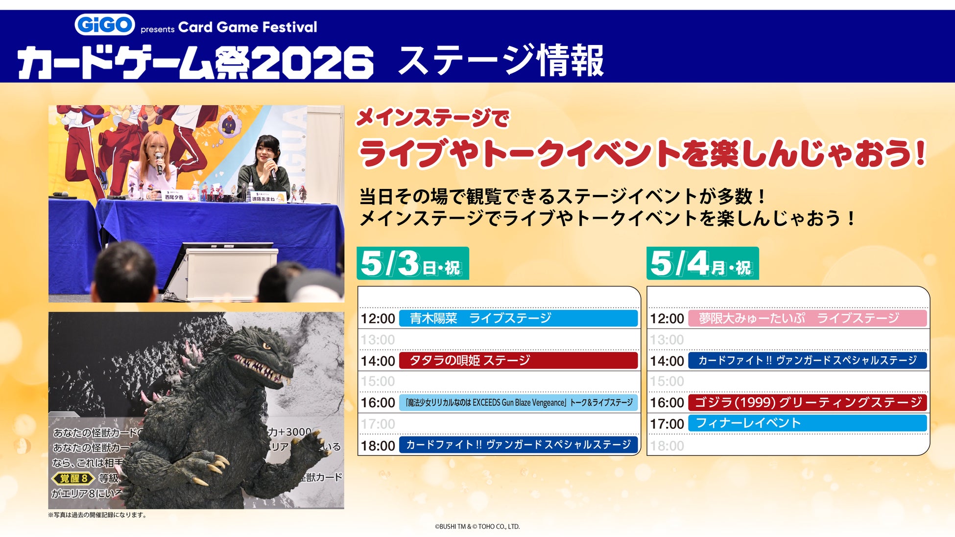 株式会社ブシロード(本社:東京都中野区、代表取締役社長:木谷高明、以下、ブシロード)は、2026年3月25日(水)に「ブシロードTCG戦略発表会2026 春」を開催し、2026年5月3日(日・祝)・4日(月・祝)開催の「カードゲーム祭2026」の最新情報を発表しましたことをご報告いたします。