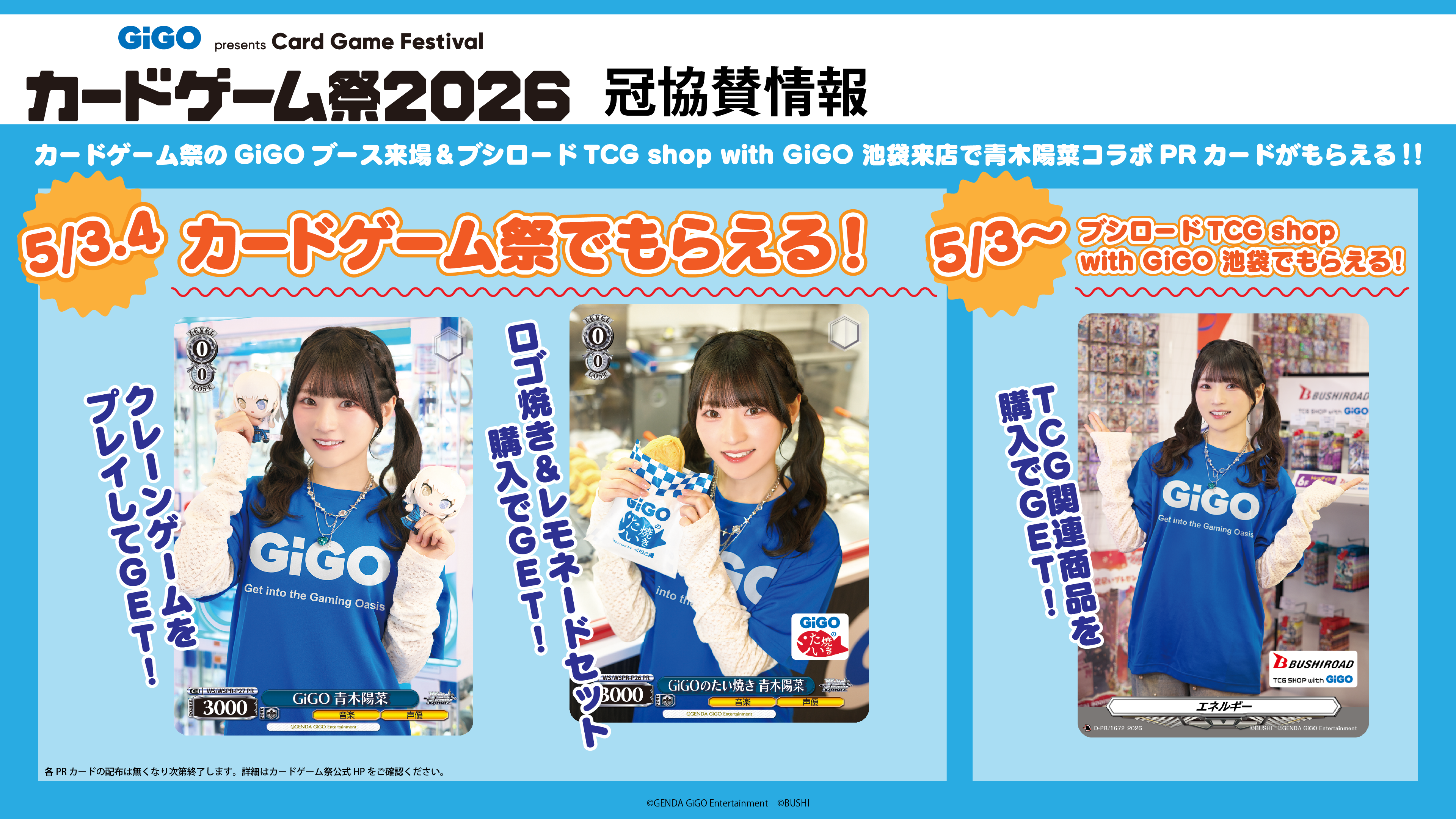 クレーンゲームをプレイ、GiGOロゴ焼き&レモネードセット購入で青木陽菜コラボPRカードをゲットしよう!