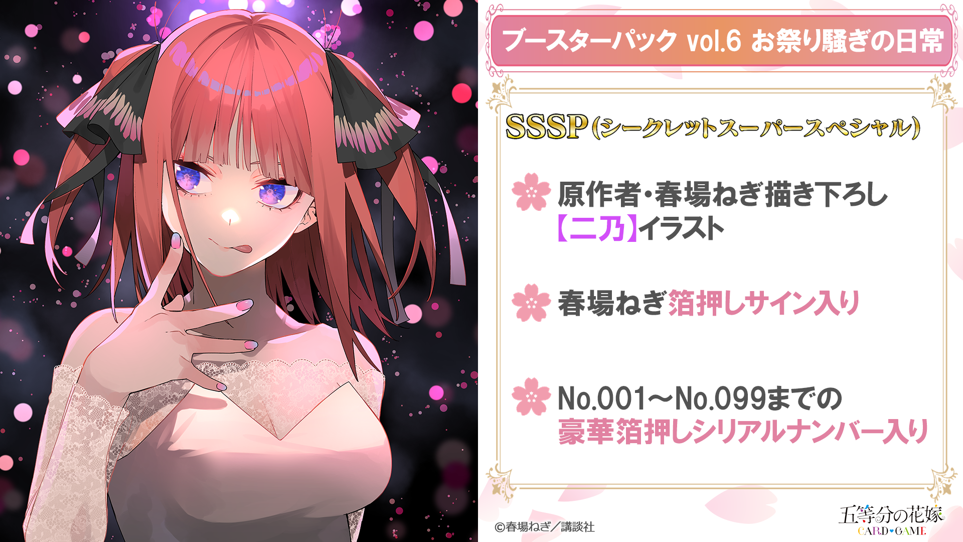 原作者・春場ねぎ先生描き下ろしの新規イラストの二乃がSSSPで登場です!