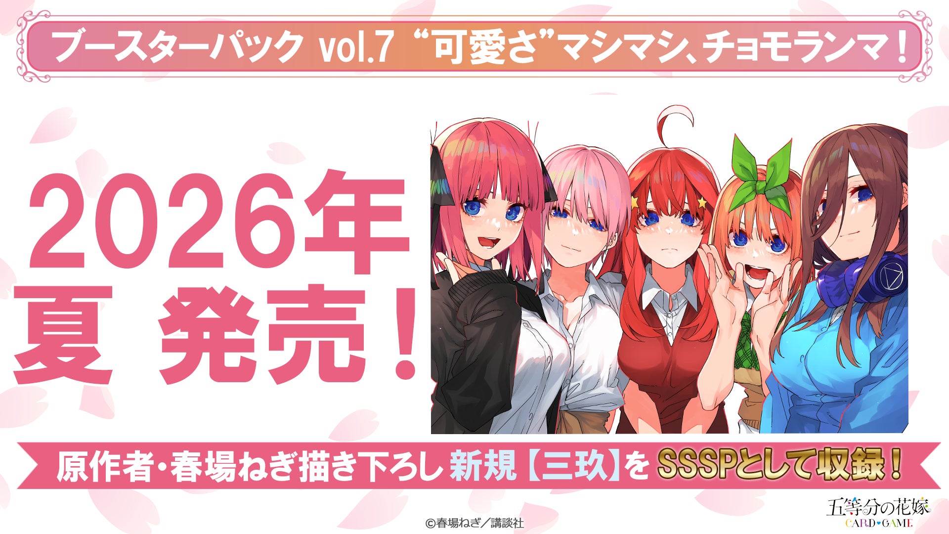 「五等分の花嫁 カードゲーム」より「ブースターパック vol.6 お祭り騒ぎの日常」が4月30日(木)、「ブースターパックvol.7 “可愛さ”マシマシ、チョモランマ!」が2026年夏に発売!
