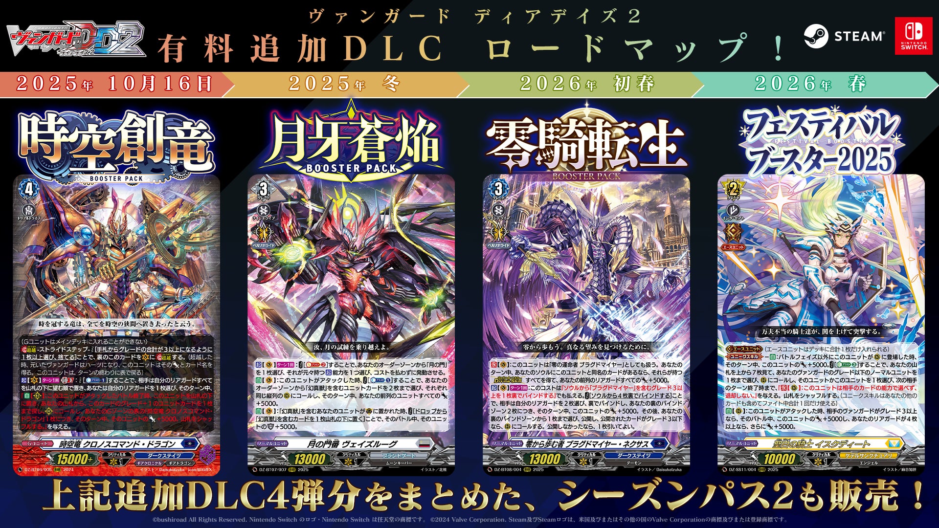 「時空創竜」「月牙蒼焔」「零騎転生」「フェスティバルブースター2025」をまとめて購入できるシーズンパス2。